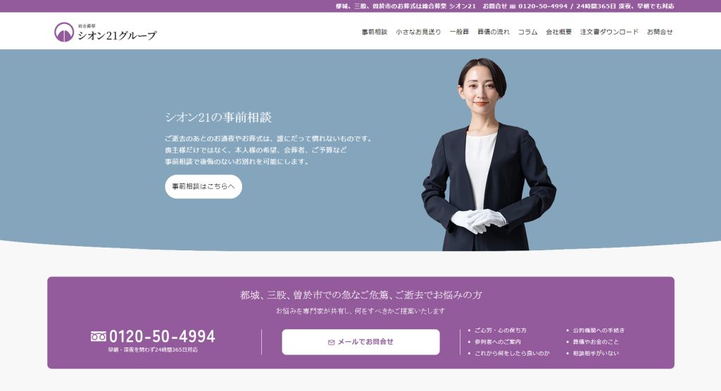 総合葬祭 シオン21グループ様では深夜・早朝問わず、24時間、365日、いつでも気軽にご相談いただけます。